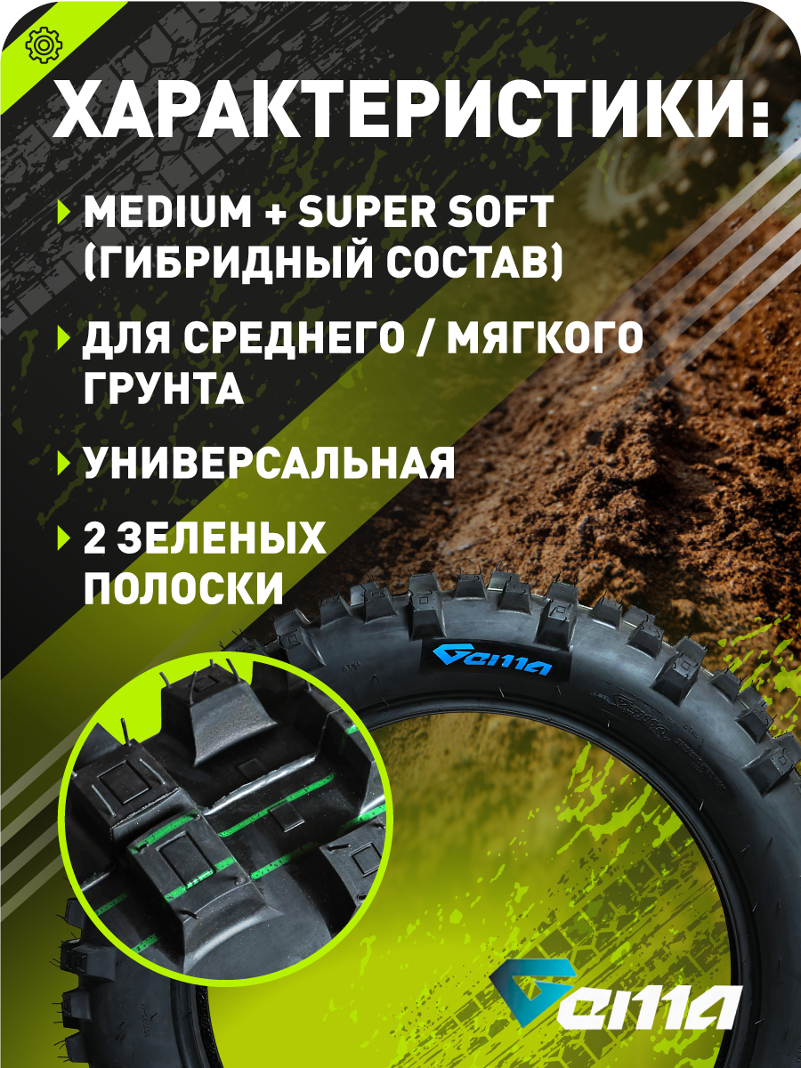 Универсальная внедорожная покрышка для эндуро с комбинированным составом резины (Medium + Super Soft). Оптимальна для смешанных условий: грязь, песок, каменистые участки и мокрая трава. Сочетает стабильность Medium-состава на твёрдых поверхностях и агрессивное сцепление Super Soft в вязких грунтах.