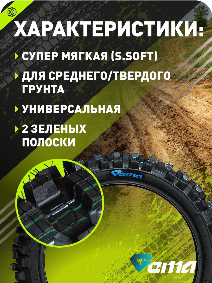 Гоночная супермягкая эндуро/кроссовая покрышка для заднего колеса с корпусом и протектором, адаптированными для сложных, грязевых и мягких покрытий. Является полным аналогом Borilli MX77 — полностью повторяет рисунок шашки, характеристики сцепления и поведение на трассе, сохраняя значительно более доступную цену без компромиссов по качеству.