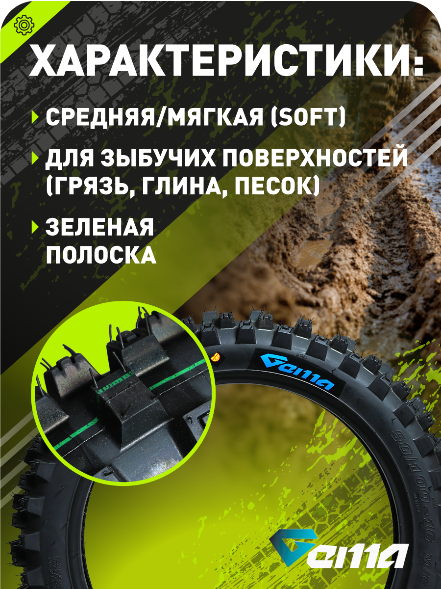 Внедорожная передняя покрышка SOFT-состава для кроссовых среднеразмерных мотоциклов и питбайков. Агрессивный рисунок протектора с оптимальным распределением блоков обеспечивает уверенное управление на песке, грязи и рыхлом грунте. Мягкая резиновая смесь гарантирует максимальное сцепление в экстремальных условиях.