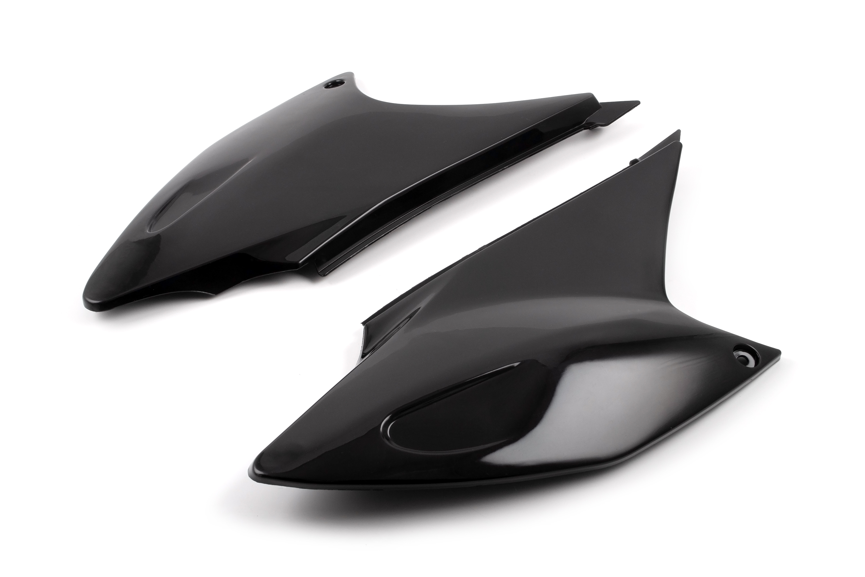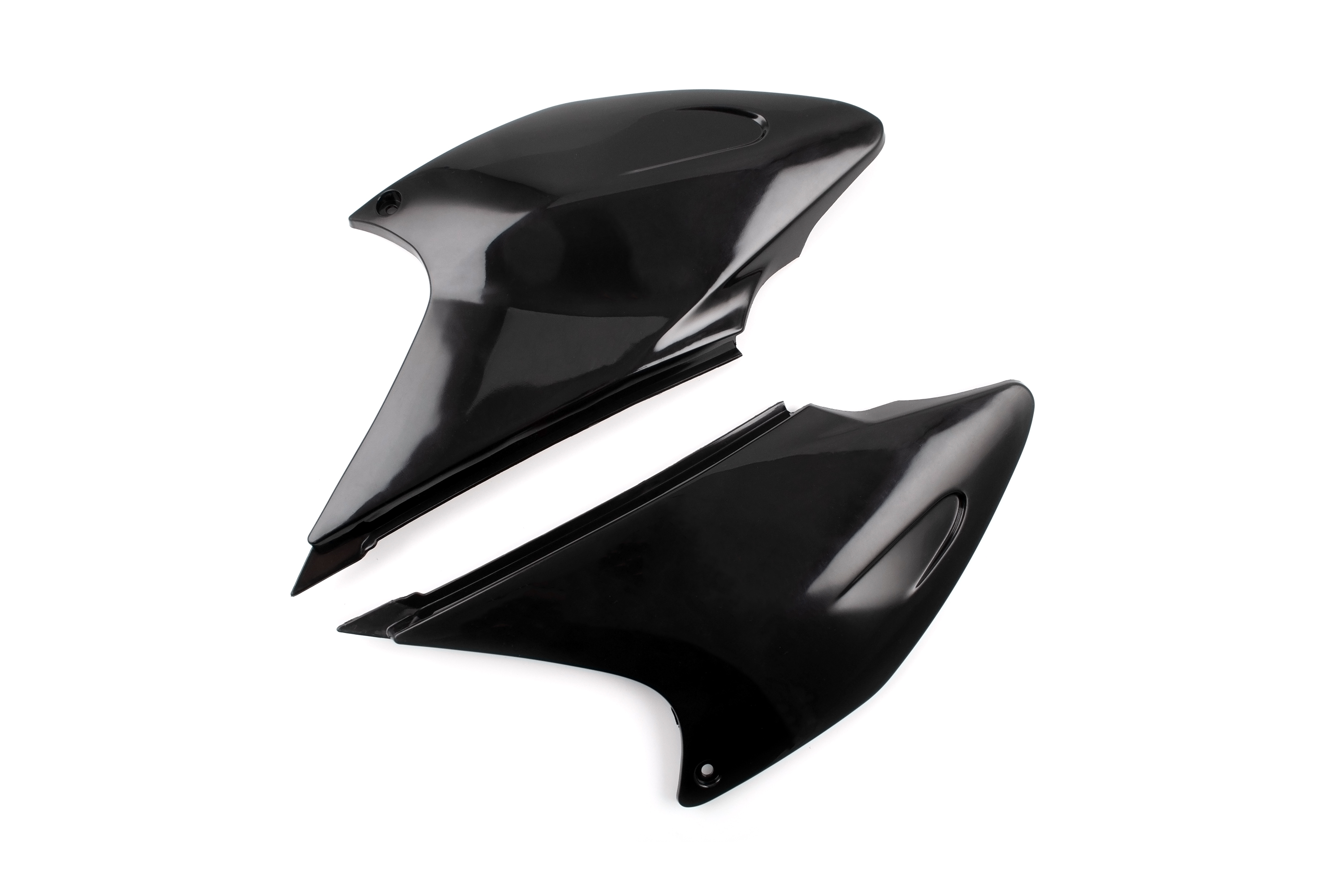 - Комплект задних боковых обтекателей (правая и левая сторона) для мотоциклов эндуро. Пластиковые панели, закрывающие пространство под сиденьем по бокам от топливного бака. Имеют универсальную геометрию для установки на несколько популярных моделей китайских эндуро мотоциклов. Изготовлены из прочного пластика.