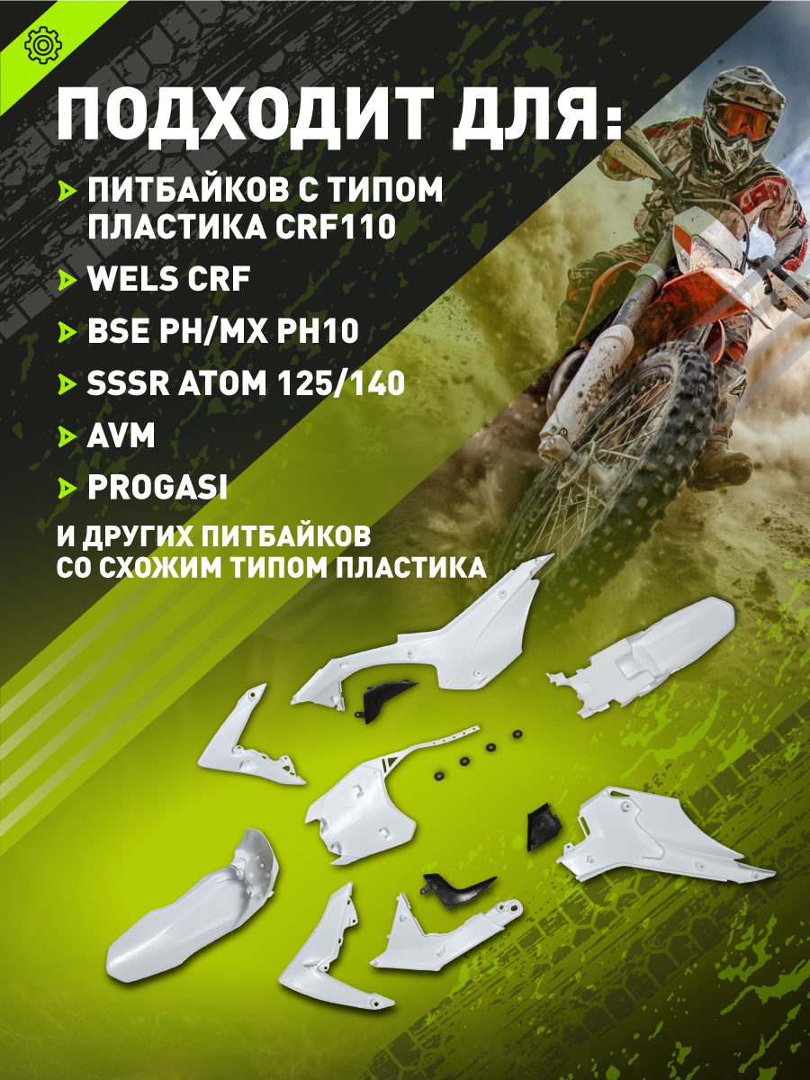 Комплект пластика для питбайка (BSE PH/WELS CRF110 тип) белый NEW