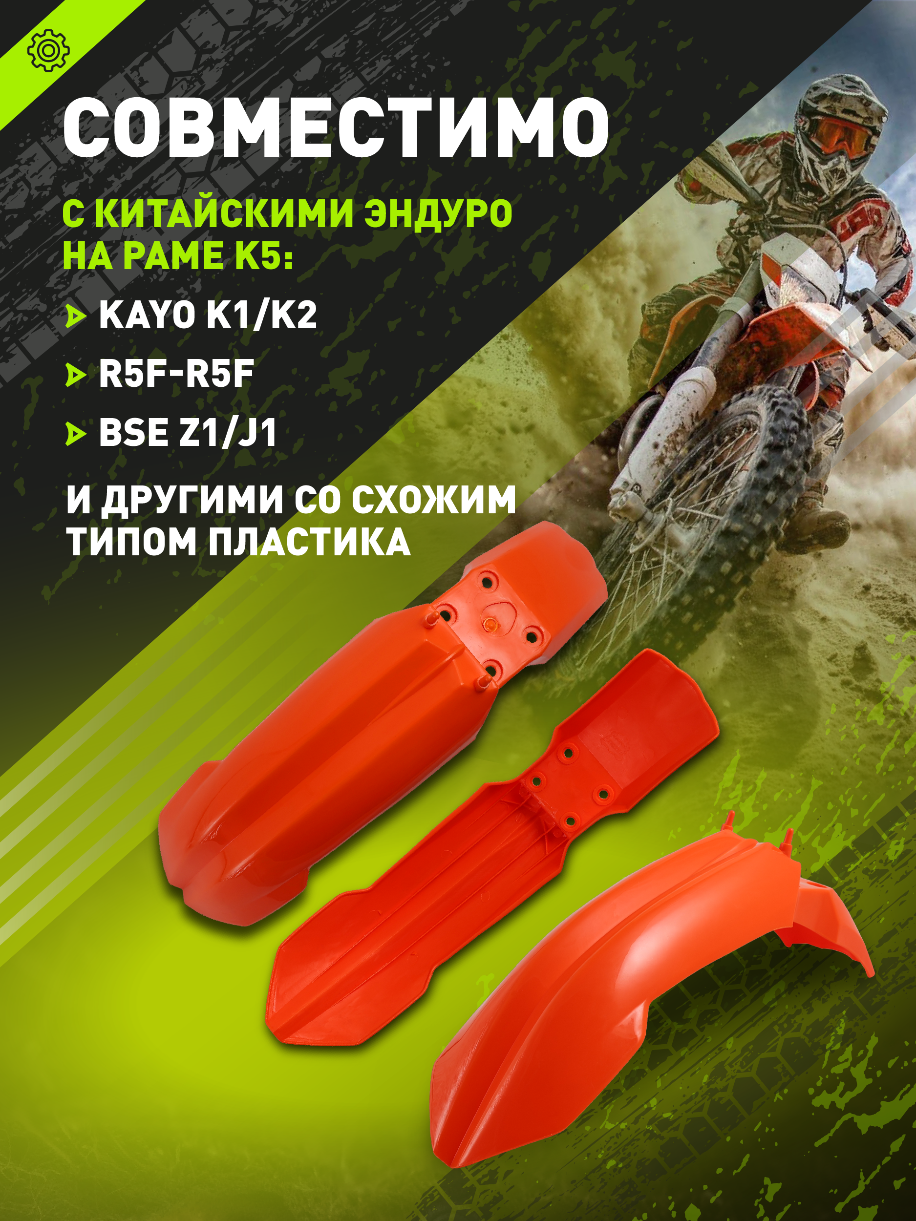 Совместимо с китайскими эндуро на раме K5: Kayo K1/K2, R5F-R5F, BSE Z1/J1.