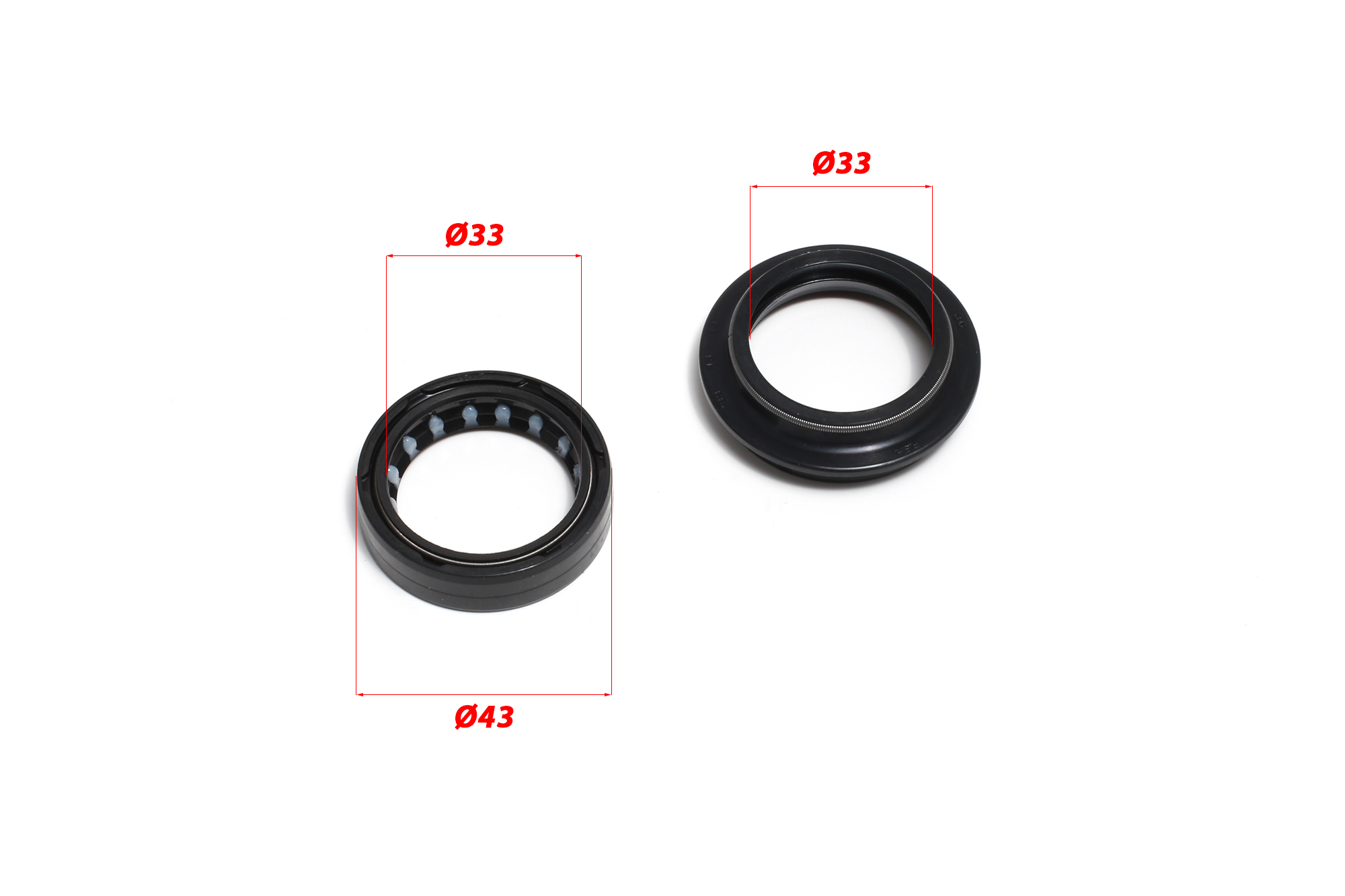 Сальники + пыльники вилки питбайка 33x43x10.5 / 33x43x14 (Комплект на вилку)