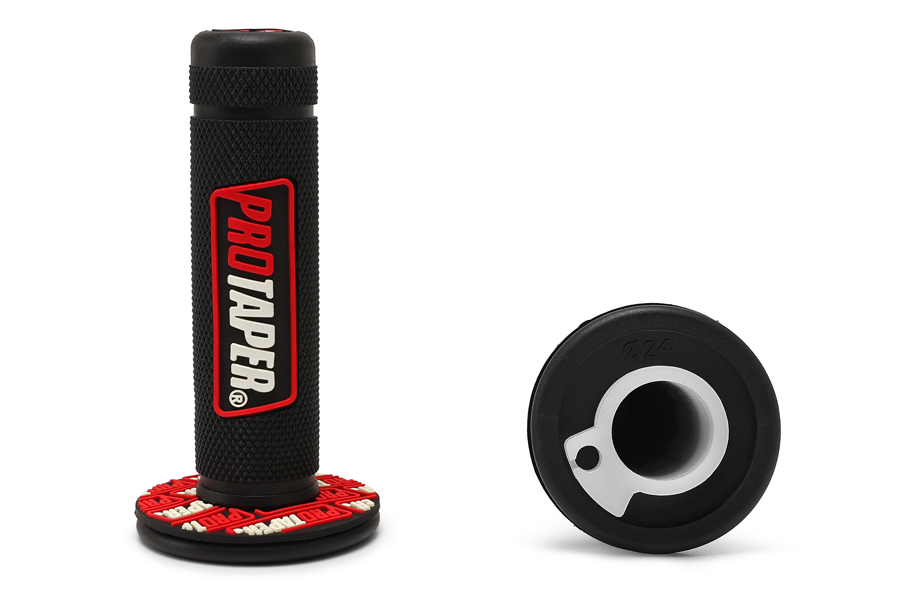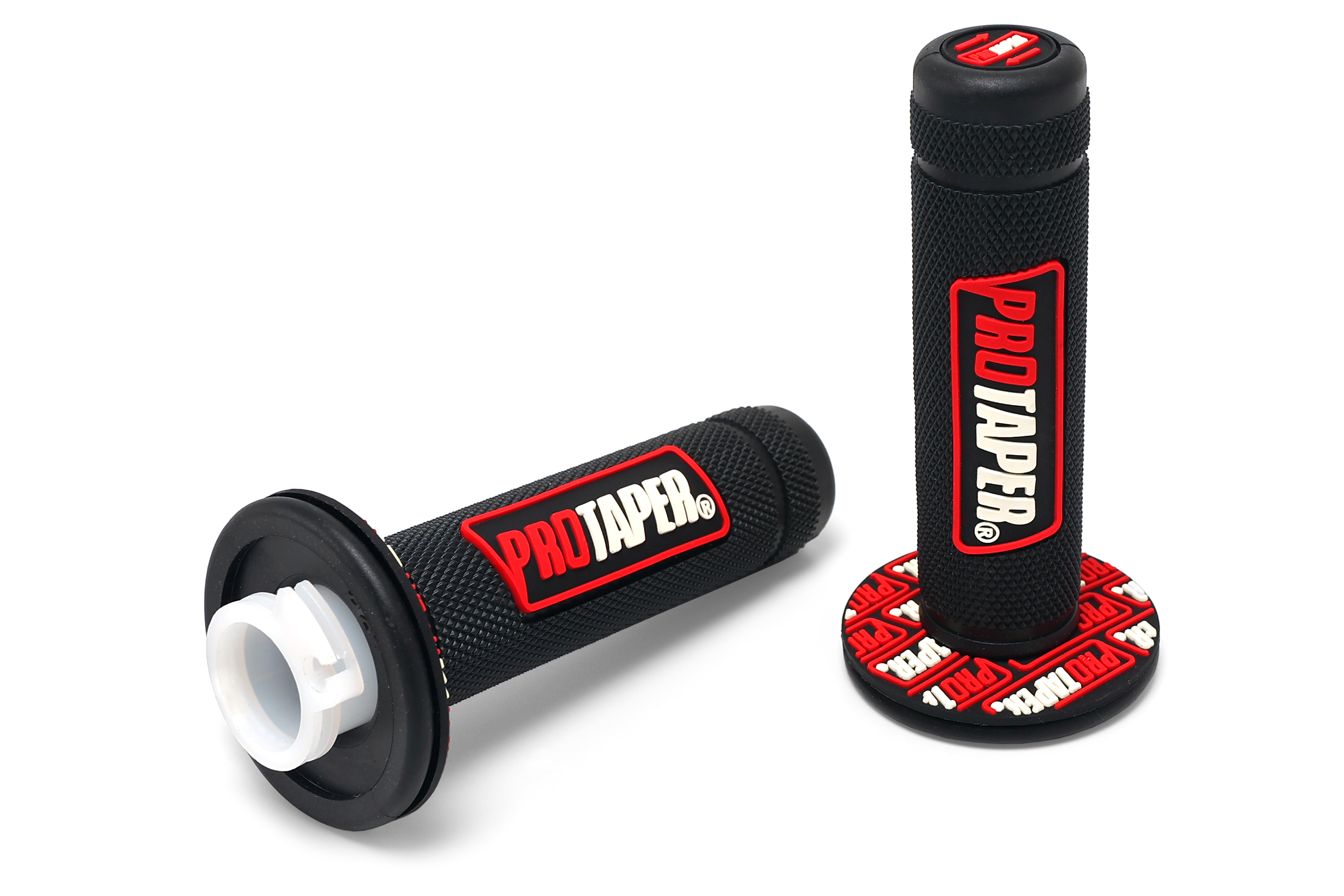 - Комплект резиновых грипс Pro-Taper с пластиковой основой ручки газа для мопедов, питбайков, скутеров и эндуро мотоциклов. Левая грипса диаметром 22 мм устанавливается непосредственно на руль, правая грипса диаметром 22 мм интегрирована с пластиковой основой ручки газа стандартного размера.