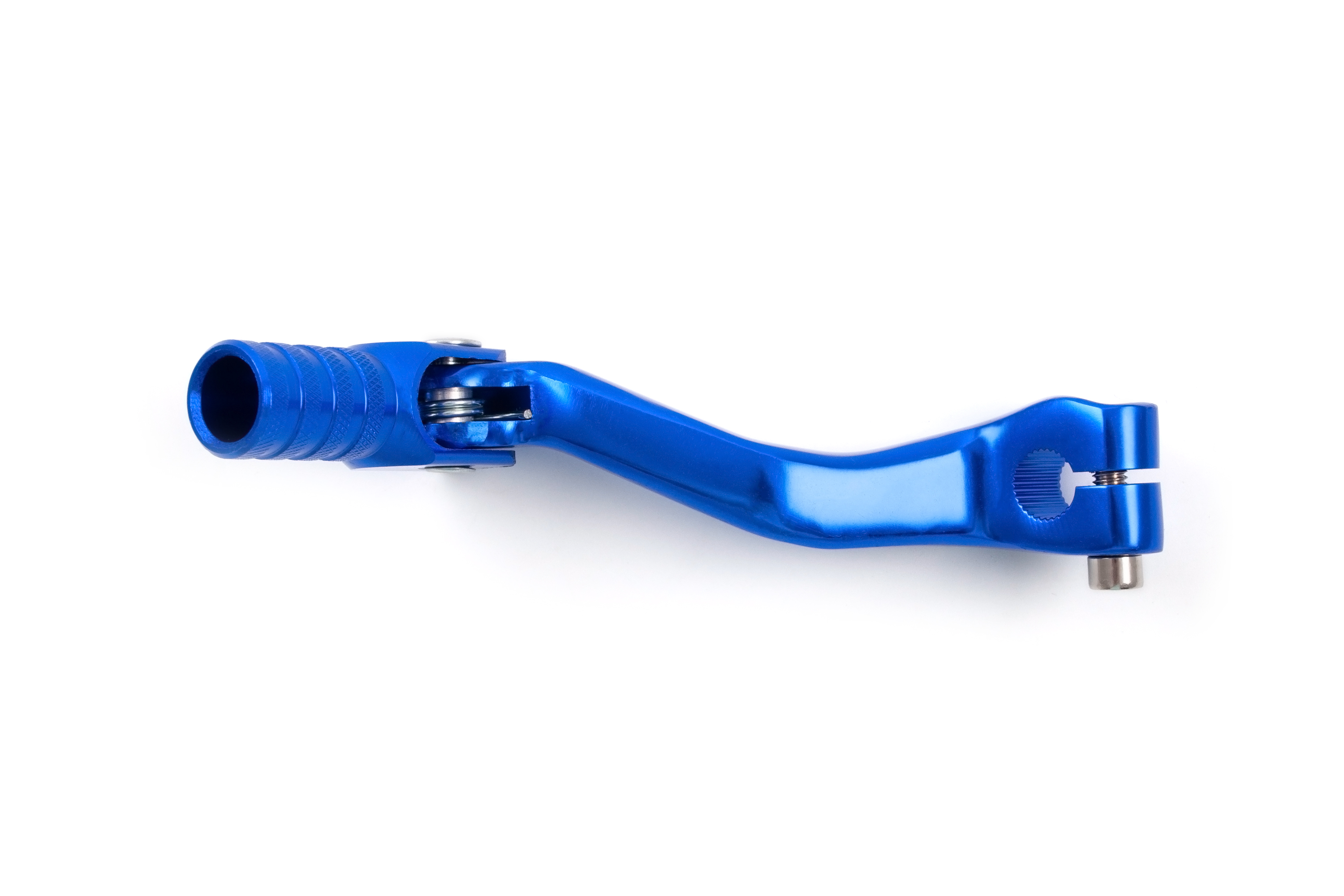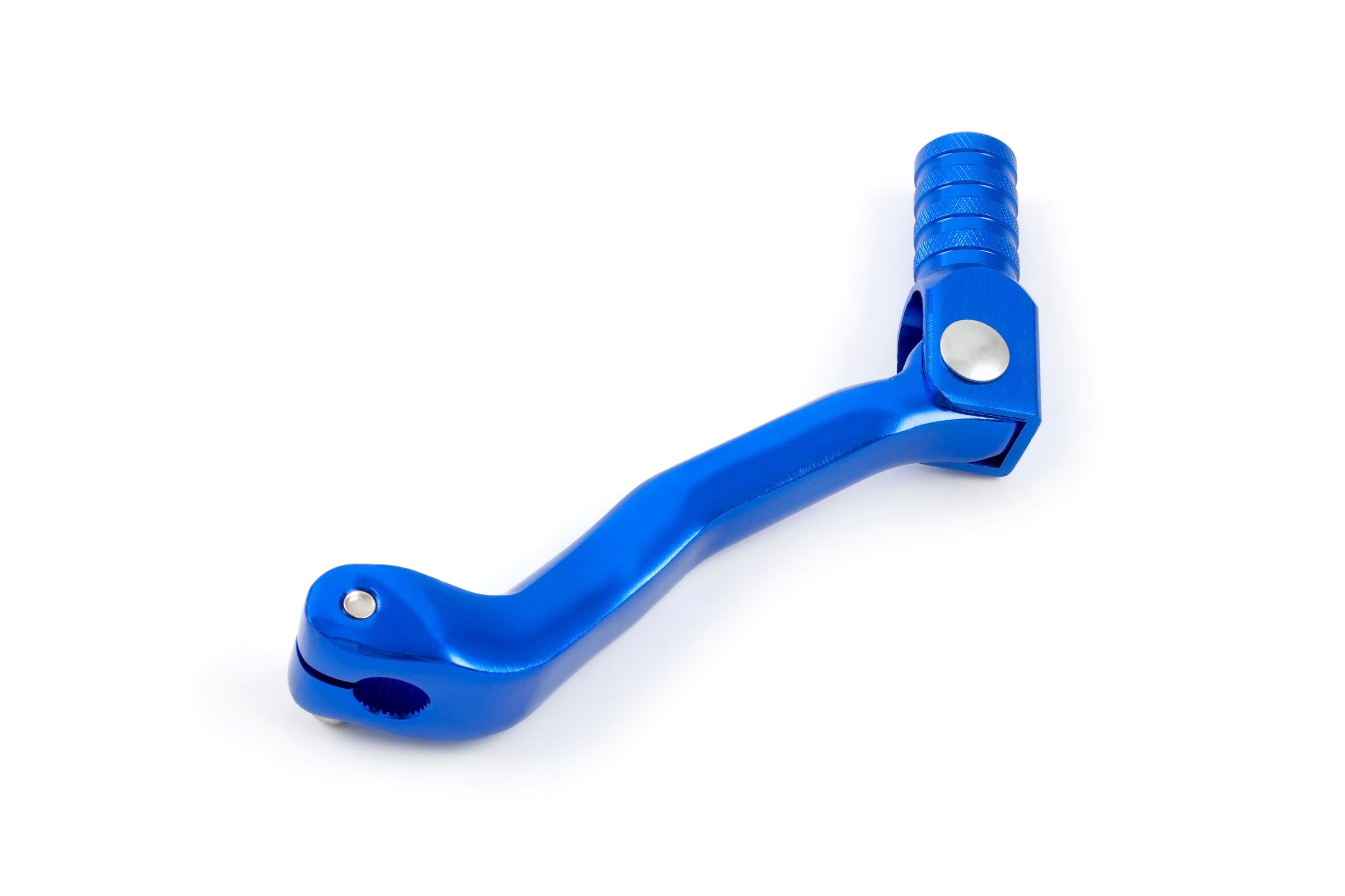 - Алюминиевый складной рычаг переключения передач синего цвета для эндуро мотоциклов с двигателями 165-172 FMM и 174 CBS-NB. Изготовлен из литого алюминия со складным кончиком, который предотвращает поломку рычага при падении или боковом ударе. Универсальная конструкция с вылетом, не гнет вал при падениях. Установка без втулки. Совместим с двигателями 165FMM, ZS170MM-2, ZS172-3A, ZS172-5A, ZS174MN-3.