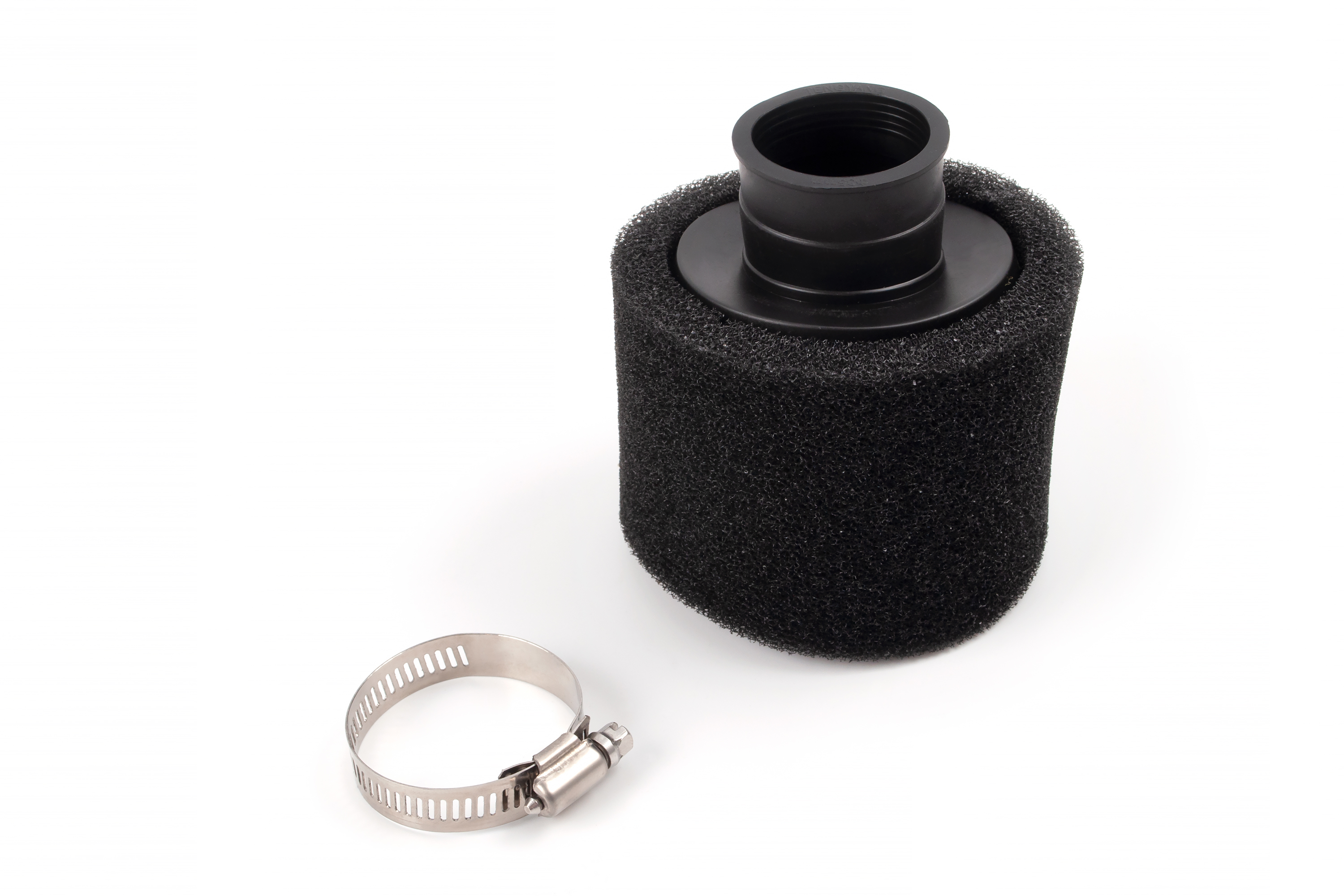 Универсальный воздушный фильтр с внутренним диаметром посадочного отверстия 35 мм. Имеет угловую форму, что удобно при ограниченном пространстве под установку. Корпус фильтра выполнен из пластика, рабочая часть — из синтетического материала с многоразовой структурой, легко моется и обслуживается.