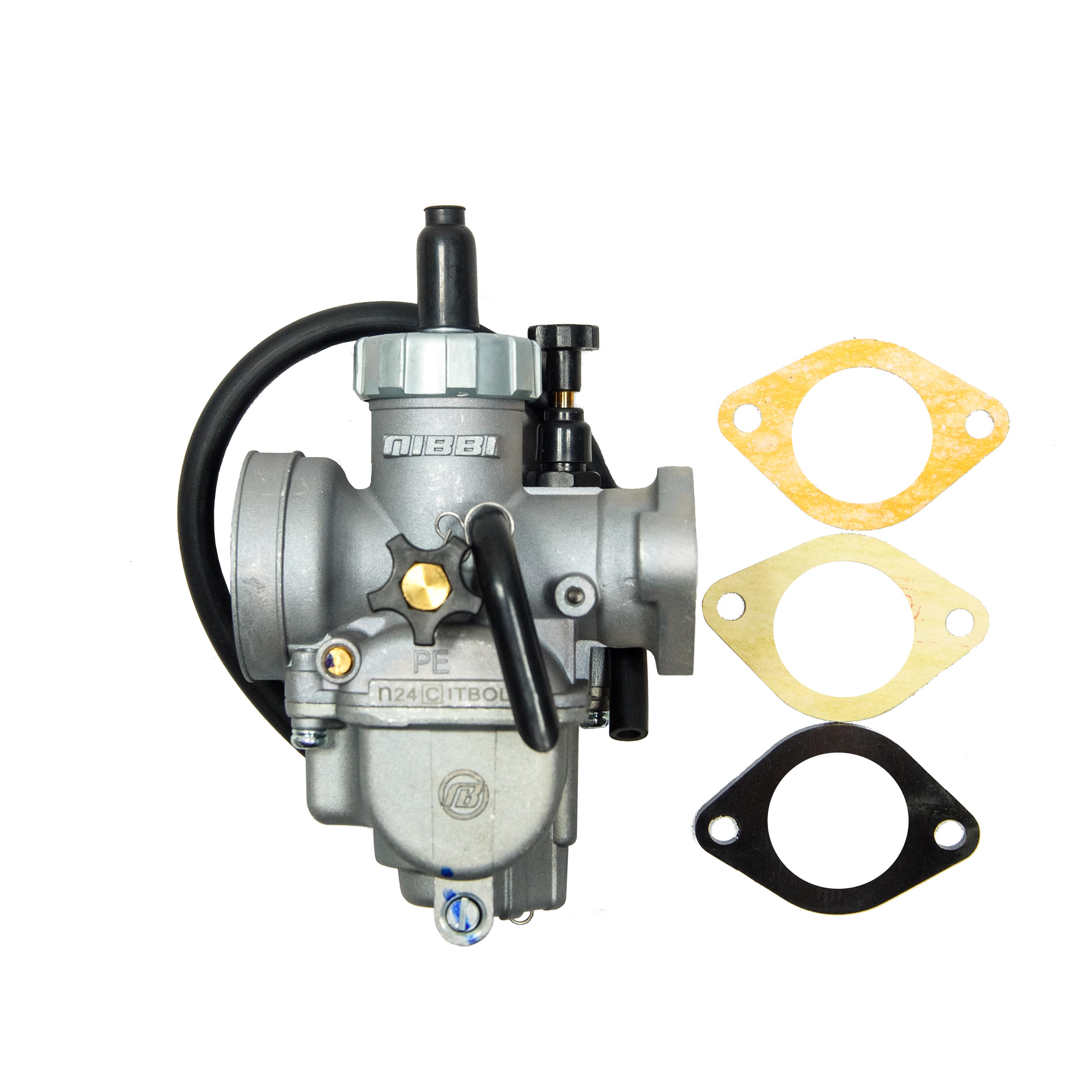 Карбюратор NIBBI PE24 FL (коллектор под шпильки) — один из самых продвинутых и производительных карбюраторов для питбайка с моторами 125см³-140см³. Карбюратор крайне прост в обслуживание, его крепление к впускному коллектору осуществляется ,болтами