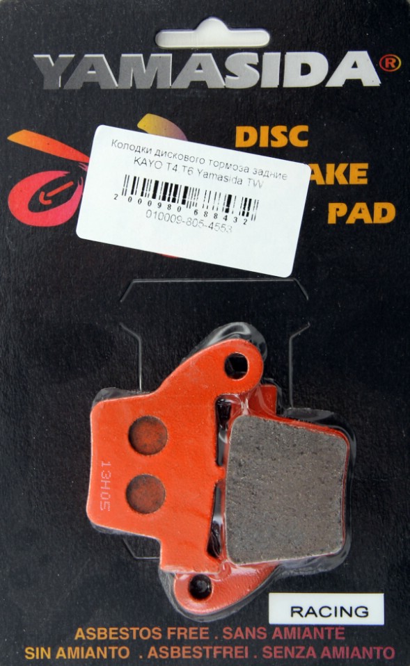 Колодки дискового тормоза задние KAYO T4,Т6 Yamasida TW